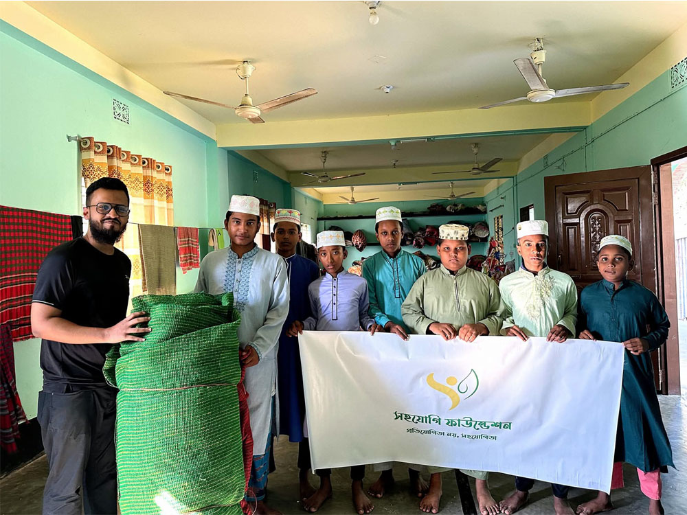 Sohojogi Foundation team visited Moddhozina Hafizia Madrasha, Baghmara, Rajshahi to give floor mats to the orphan kids for the upcoming winter. This project is allocated to promote the goals of Good Health & Well-being (SDG 03), Quality Education (SDG 04) and Reduced Inequalities (SDG 10).